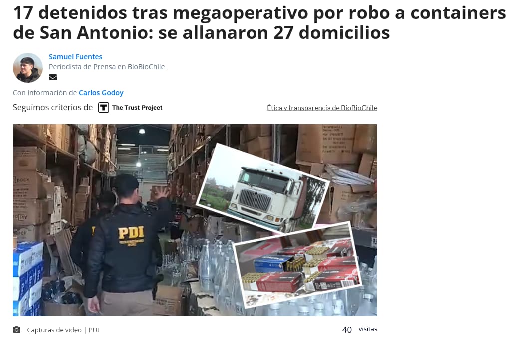 The director general of the PDI, Eduardo Cerna, explained that the criminal structure attacked trucks transporting containers from San Antonio, or simply stole their cargo “through false documentation at the ports themselves, also relying on privileged information.”