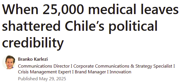 In the lead-up to Chile’s presidential elections, the Comptroller General uncovered that over 25,000 public employees had travelled abroad while officially on medical leave. Nearly 36,000 sick notes were linked to international departures, costing the state an estimated $350 million. But as serious as the financial loss may be, what collapsed first was the narrative.